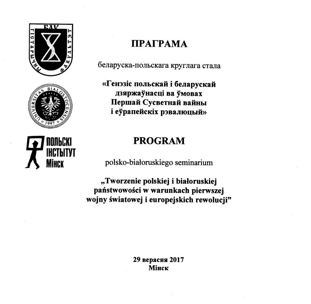 29 верасня 2017 г. на гістарычным факультэце БДУ прайшло пасяджэнне другога польска-беларускага круглага стала, у якім прыняў удзел дэкан гістарычнага факультэта М. М. Мязга. Сустрэчы беларускіх і польскіх гісторыкаў становяцца ўжо традыцыйнымі. У ходзе іх абмяркоўваюцца актуальныя праблемы сумеснай беларуска-польскай гісторыі, якія носяць дыскусійны характар. На гэты раз на абмеркаванне была вынесена тэма “Генезіс польскай і беларускай дзяржаўнасці ва ўмовах Першай сусветнай вайны і еўрапейскіх рэвалюцый”. Дыскусія па ўказаннай тэме вызначалася высокім навуковым ўзроўнем. Сярод ўдзельнікаў круглага стала польскі і беларускі бок прадстаўлялі 10 дактароў навук. У прагучаўшых дакладах былі вызначаны як адметныя, так і агульныя рысы дзяржаватворчых працэсаў на беларускіх і польскіх землях, падкрэслівалася іх узаемасувязь. Правядзенне наступнага круглага стала запланавана ў 2018 г. у Беластоку.