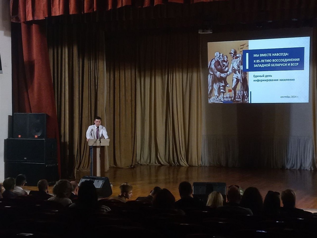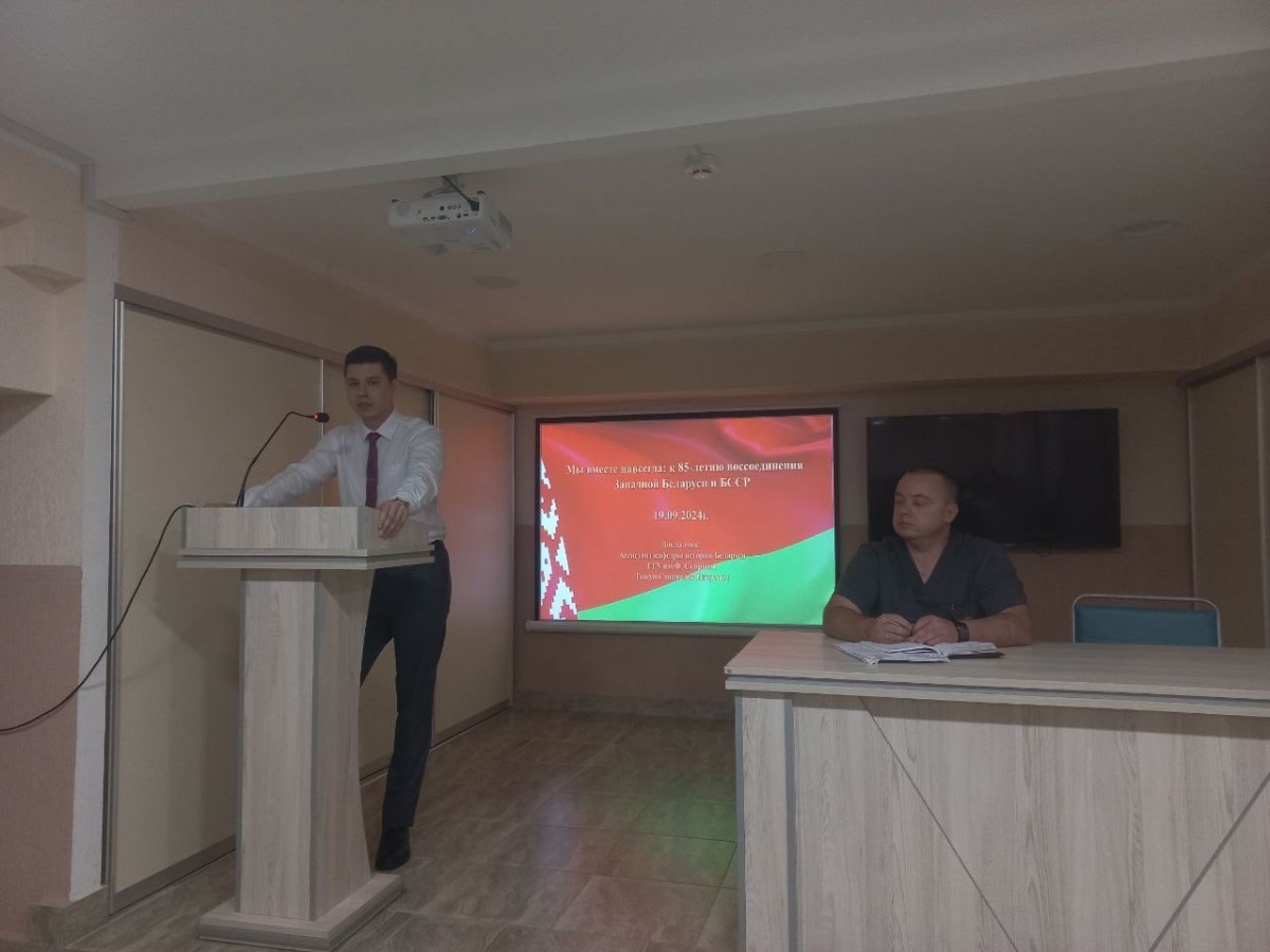 В Единый день информирования населения ассистент кафедры истории Беларуси Тыкун С.И. вместе со студентами факультета истории и МК, членами клуба военно-исторической реконструкции в Гомельском государственном областном дворце творчества детей и молодежи и Больнице скорой медицинской помощи прочитали лекцию на тему: «Мы вместе навсегда: к 85-летию воссоединения Западной Беларуси и БССР».