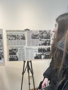 Студенты групп И-11, МД-12 и ЛО-13 вместе с кураторами Островской С. Л., Филипчик М.А. и Богданович Е.Г. факультета истории и межкультурных коммуникаций посетили тематическую выставку в музее истории печати и фотографии Гомельщины, посвященную истории Гомельской области начала 90-х годов. Экспозиция представила уникальные публикации, отражающие непростой период перехода к независимости.