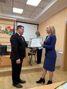В Администрации Центрального района города Гомеля в торжественной обстановке Благодарность Гомельского областного исполнительного комитета вручили ПОЧИНОК ТАТЬЯНЕ ВИКТОРОВНЕ, заместителю декана по ИВР, депутату Гомельского городского Совета депутатов за активную работу и личный вклад в информационно- образовательной деятельности среди молодёжи и населения. Награду вручил глава администрации Центрального района Дмитрий Лебедь
