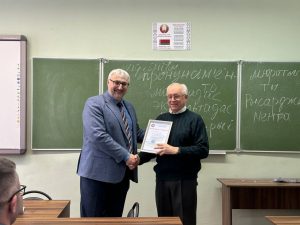 Сегодня, 31 марта, на заседании Совета факультета в торжественной обстановке был награжден Почетной грамотой университета ветеран кафедры философии и специальных исторических дисциплин — Владимир Иванович Бышик.