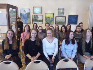 Члены СНИЛ «Друзья музея», студенты 3 курса специальности «Музейное дело и охрана историко-культурного наследия» посетили выставку Светланы Ноздрин-Плотницкой «Земля и Небо. Большую часть экспозиции составляют работы под условным названием «Небо». Они раскрывают авторское христианское мировоззрение художницы, красоту православного мироощущения. Образ же Земли предстает в обобщении пейзажных панорамных мотивов. Выставка освещает 20 лет созидания и творческих поисков мастера.