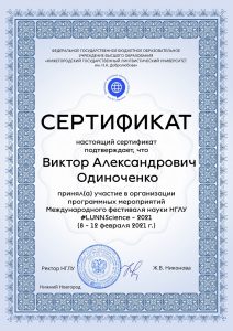 Адзіночанка Сертыфікат