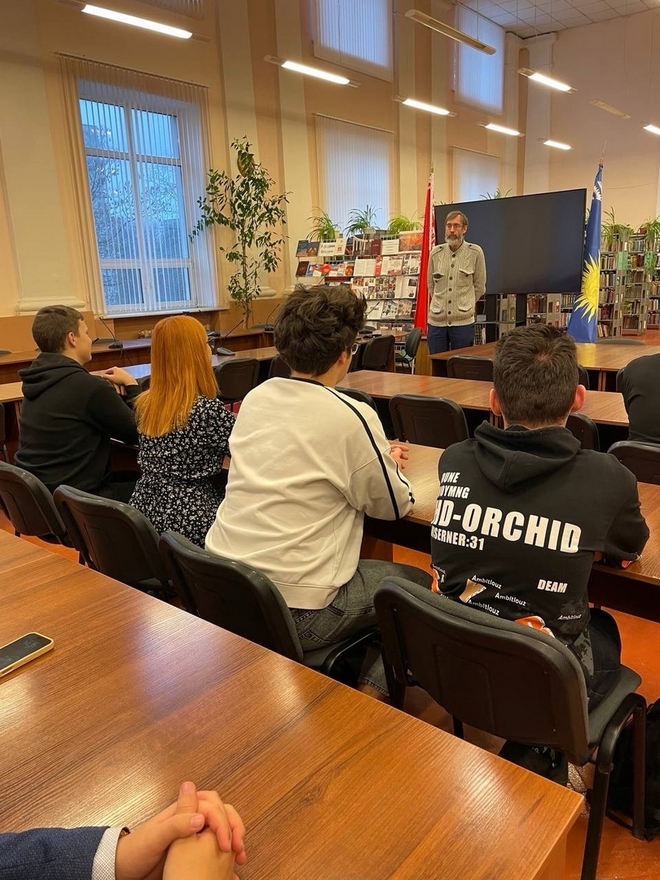 4 декабря студенты факультета истории и межкультурных коммуникаций в читальном зале корпуса 2 просмотрели фильм ОНТ "БЕСЫ", посвящённый политической ситуации в Республике Беларусь. Комментарии к фильму сделал старший преподаватель кафедры истории Беларуси Цацарин В. В.