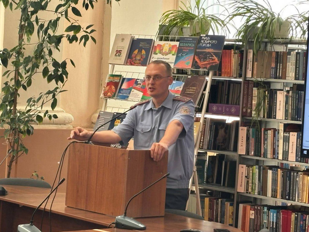 На факультете истории и МКК состоялась воспитательная беседа с Новиковым Денисом Сергеевичем, сотрудником управления внутренних дел Гомельского облисполкома, старшим инспектором отдела идеологии, подполковником. Тема беседы "Неделя безопасности". Студентам-первокурсникам рассказали о разных видах правонарушений и как необходимо обезопасить себя от незаконных действий.