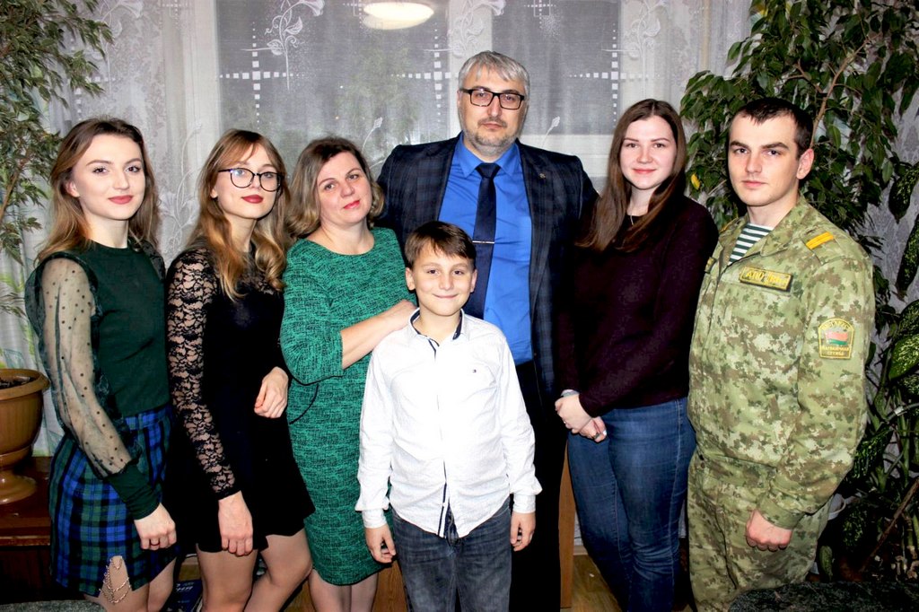 – Да, стаж нашей семейной жизни составляет 23 года. Моя супруга Алёна Черепко тоже учитель истории. Познакомились мы во время моего обучения в университете на педагогической практике в оздоровительном лагере. На четвертом курсе поженились, а на пятом у меня появился старший сын. С тех пор мы вместе. Сейчас у меня уже четверо детей. Старший сын Саша окончил факультет математики и технологий программирования ГГУ и сейчас проходит службу в пограничных войсках. Он уже создал свою семью, его жена Настя, к слову, тоже педагог, она преподаёт английский язык. Дочь Ангелина учится на четвёртом курсе Гомельского медицинского университета. Младшая дочь Янина – школьница, и самый младший Станислав учится в третьем классе.
